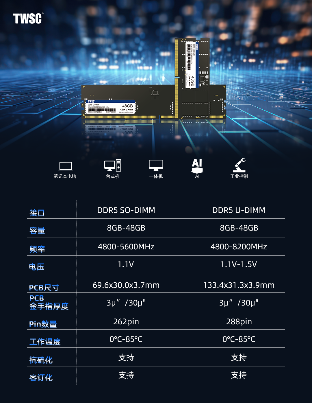 2024年作為AI PC元年,伴隨異構算力(CPU+GPU+NPU)需求高漲及新處理器平臺推出,DDR5內存以高速率、大容量低延遲與高帶寬,有效滿足高性能算力要求,加速本地AI大模型運行效率,推動AIPC硬件端側應用落地。德明利最新推出針對AI PC的DDR5 SO-DIMM和U-DIMM內存模組系列產品,單條內存容量高達48GB,理論帶寬32GB/s,兼容主流CPU平臺與操作系統(tǒng),為應對復雜計算挑戰(zhàn)提供高效穩(wěn)定的人工智能存儲方案,助力智能計算新時代。