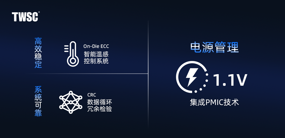 (1) 高效穩(wěn)定:內置智能溫感控制系統(tǒng),實時監(jiān)控內存溫度,配合高品質晶圓顆粒與片上錯誤校正碼(On-Die ECC),保障了數據的安全性和穩(wěn)定性,確保即便在長時間高強度工作環(huán)境下也能維持高效穩(wěn)定的性能表現(xiàn)。