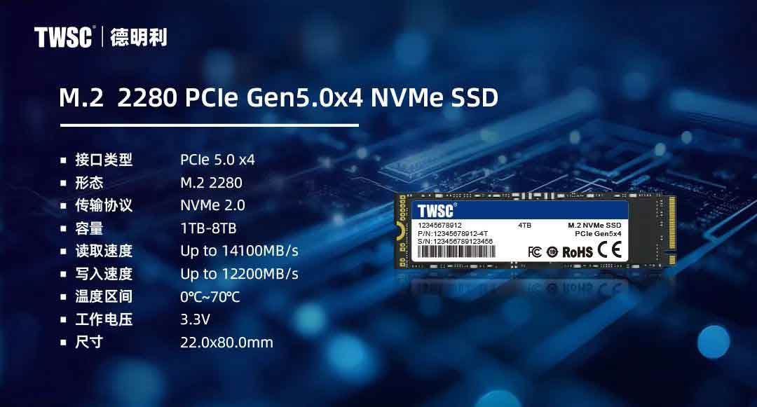 在追求極致的高性能計算、沉浸式游戲、高效云服務(wù)和創(chuàng)意內(nèi)容制作場景中,德明利M.2 2280 PCle Gen5.0x4 NVMe SSD,設(shè)備借助PCIe 5.0接口的強(qiáng)勁驅(qū)動,以8通道主控和外置DRAM的配合,實現(xiàn)接近15GB/s的極速讀取,NVMe 2.0協(xié)議的引入,以及SLC緩存技術(shù)的應(yīng)用,確保設(shè)備處理高分辨率圖形和復(fù)雜場景時,增強(qiáng)玩家的沉浸式體驗,同時保持設(shè)備的便攜性和電池續(xù)航。