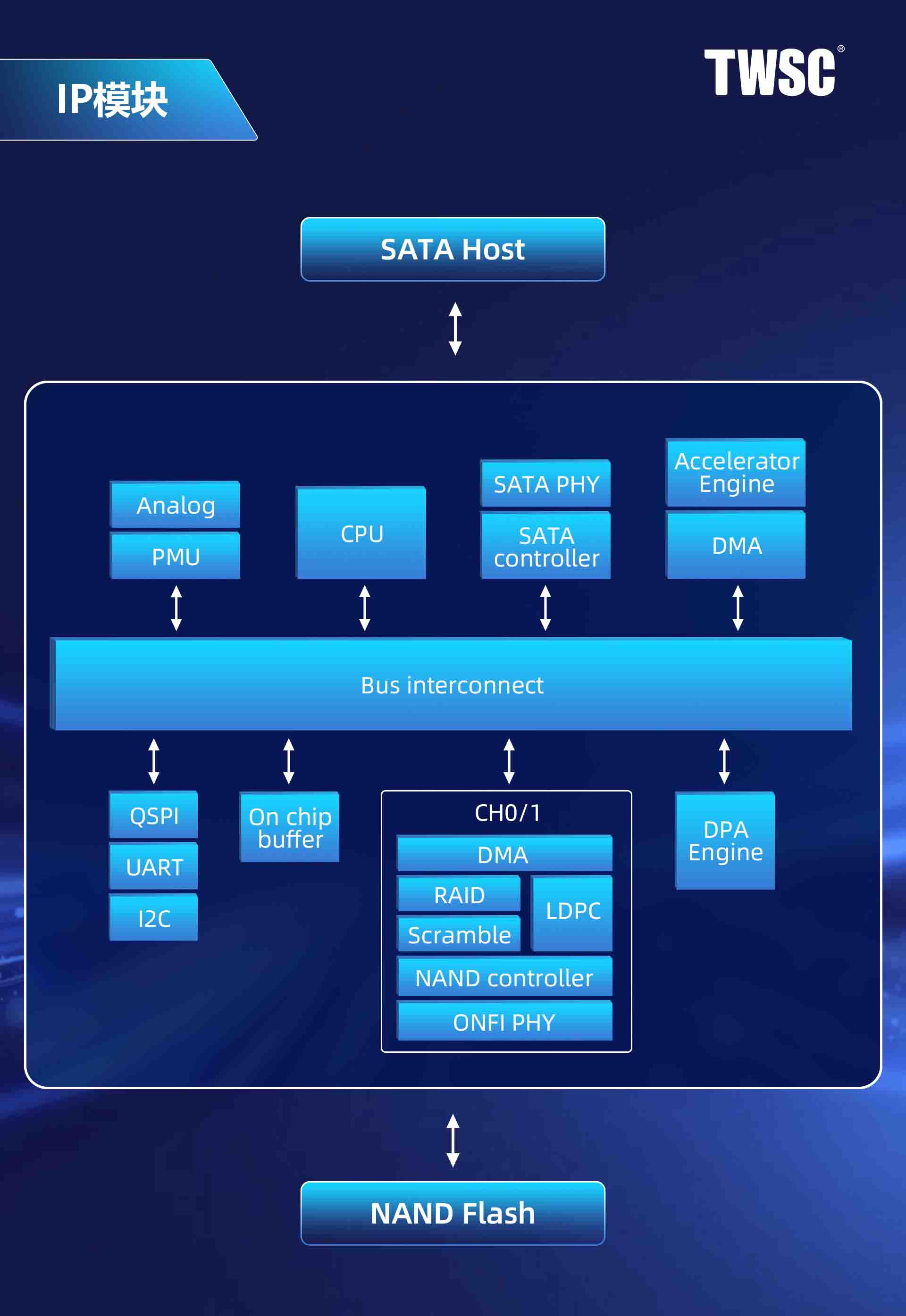 通過TW6501 SATA SSD存儲(chǔ)控制芯片核心IP模塊及SSD產(chǎn)品的自主研發(fā),公司掌握了新一代存儲(chǔ)介質(zhì)管理、硬件加速引擎及軟硬件協(xié)同、數(shù)據(jù)安全以及低功耗設(shè)計(jì)方案等核心關(guān)鍵技術(shù),在“數(shù)據(jù)讀寫、處理到存儲(chǔ)”全流程數(shù)據(jù)路徑關(guān)鍵環(huán)節(jié),建立起流暢交互、高效運(yùn)算、安全管理及能耗管控綜合能效優(yōu)化體系,全方位驅(qū)動(dòng)存儲(chǔ)芯片的高效運(yùn)算和品質(zhì)提升。